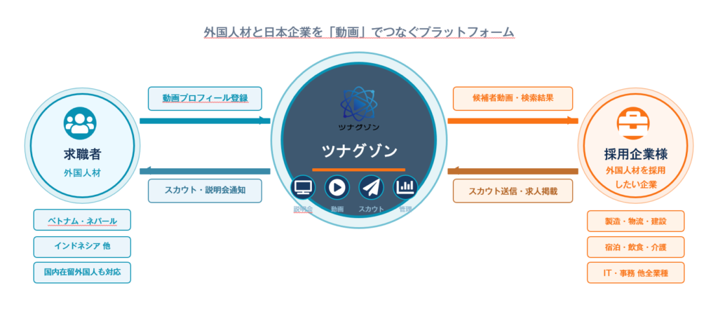 エコノハキャリア株式会社は、外国人材採用に特化した動画マッチングプラットフォーム「ツナグゾン」